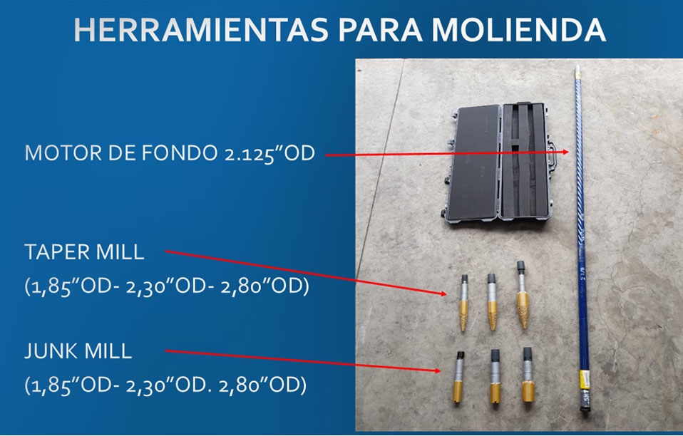 Mediante el uso de motores de fondo y brocas especializadas, se hace posible moler un rango variados de metales, sólidos y consolidados..